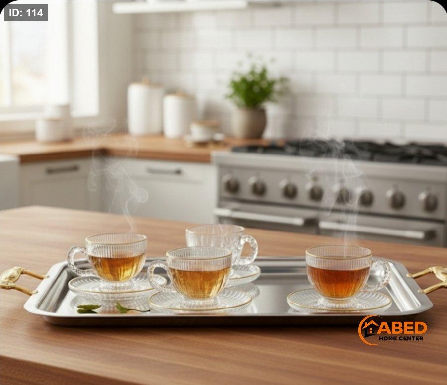 مكون من ٦ كاسات شاي و ٦ صحون