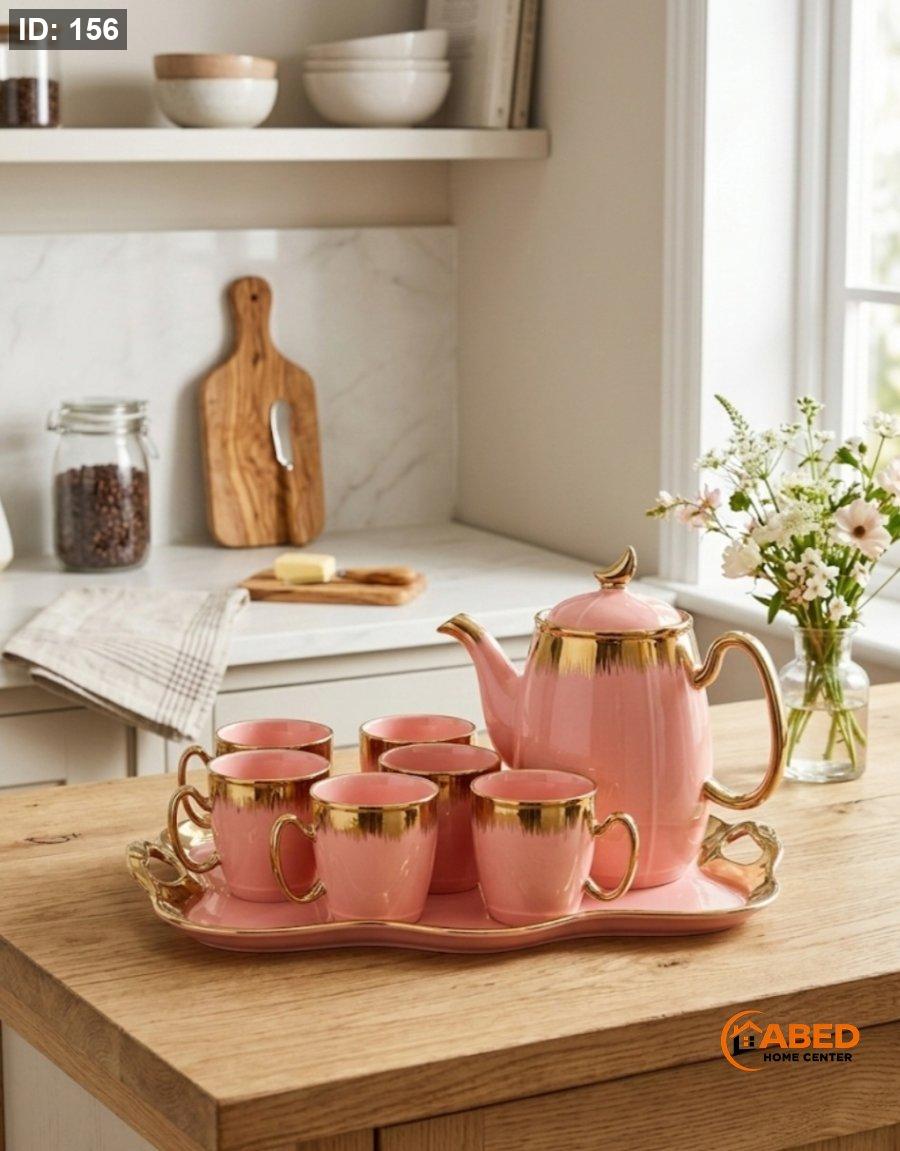 الطقم يتميز بتصميم يجمع بين الأناقة العصرية واللمسات الكلاسيكية الفاخرة، وهو مثالي لإضافة لمسة جمالية على تقديمات الضيافة.