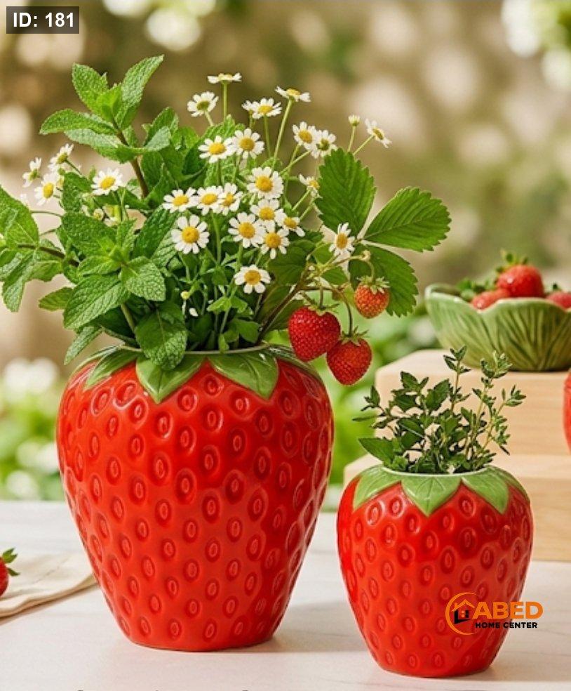 طقم فازات الفراولة من السيراميك قطعتين مختلفة الحجم