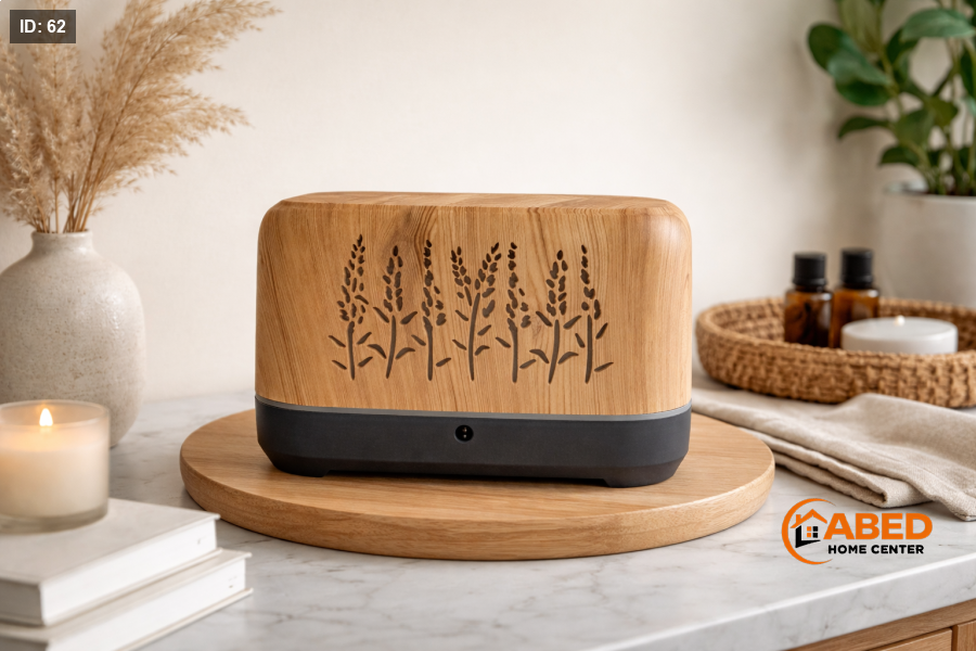 مبخرة عصرية بتصميم خشبي أنيق، تطلق بخاراً معطرًا ليملأ المكان برائحة هادئة وأجواء دافئة ✨🌿