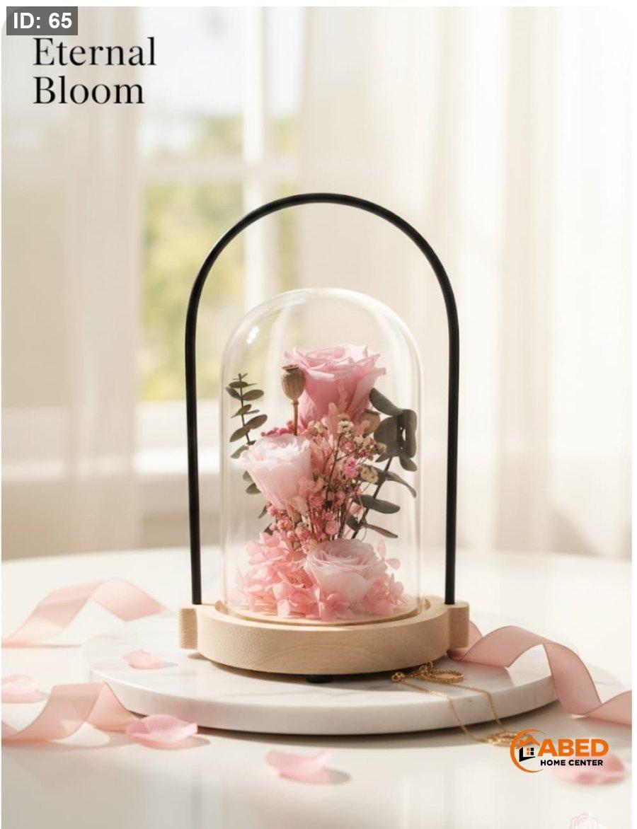 قبة زجاجية أنيقة تضم تنسيق ورد وردي فاخر، قطعة راقية تضيف لمسة جمال ورومانسية لأي مساحة ✨🌸