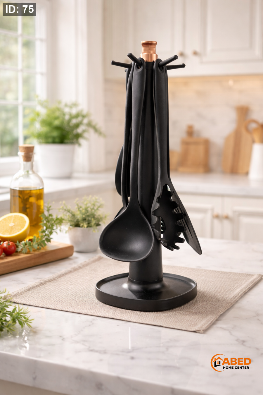 طقم أدوات مطبخ من السيليكون عالي الجودة مع قاعدة ستاند أنيقة.